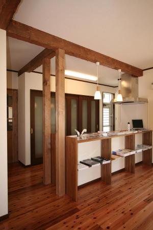 玄関から土間風に繋がる縁側やリビングに大きく現れる